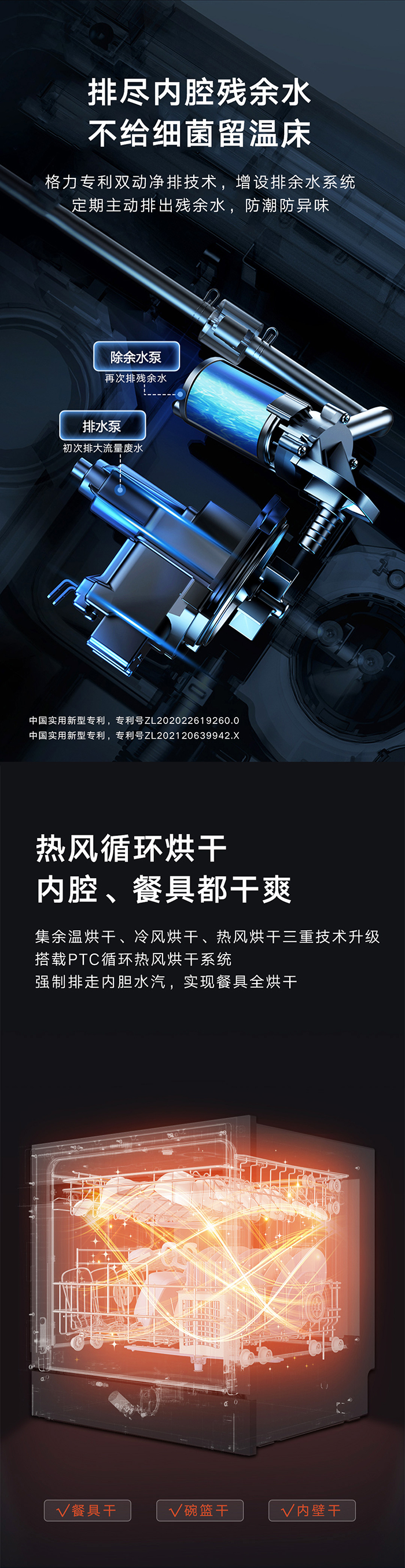 格力健康洗洗碗機(jī),專為中國家庭設(shè)計(jì);洗除排烘存更全能;熱風(fēng)循環(huán)烘干,內(nèi)腔餐具都干爽